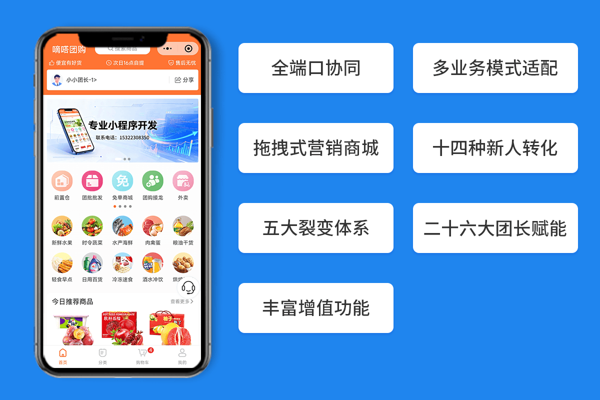 2. 功能需求清单:明确生鲜商品管理、拼团接龙、团长佣金管理、用户评价等核心功能,赤焰信息内置15大营销模块,可按需集成,无需额外开发,适配本地高频需求。