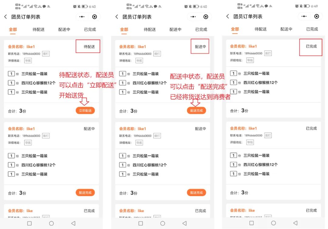 系统同时提供“区域配送”功能,平台可以事先将覆盖社区按区域进行划分,将同一个区域的团长安排在一条线路上,每条线路只需要安排一个司机统一配送。用最少的时间,跑最少的路程,完成最多个社区的配送。让司机少跑冤枉路,平台少花冤枉钱,大大提升物流效率。